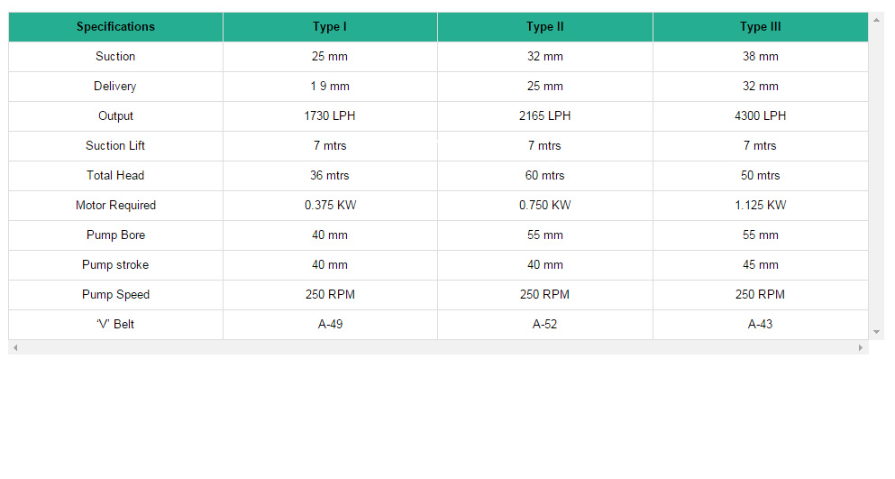 Plunger : The easy movement of plunger inside the brass sleeves, ensures positive suction and delivery.