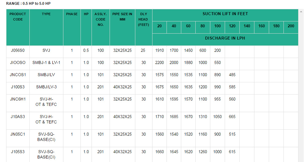 1. High Suction Lift for Borewell
