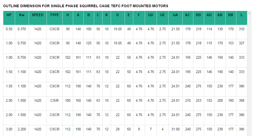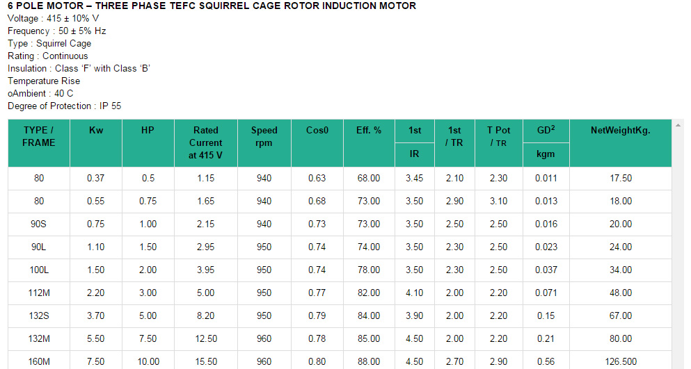 3. Performance as per IS 325, IS 2165 for 3 phase and IS 996 for single phase motors.